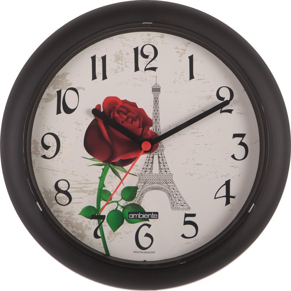 Descrição Do Produto: Medidas: 24,5d X 3,3e Cmcaracterísticas Técnicas:usa Pilha Aamecanismo Step (tic-tac)produto Nacional Informações Sobre O Produto:relógio De Parede Base Em Plástico Injetadobotões De Regulagem Na Parte Traseira Do Produtovidro: Acrílicocor Da Base: Preto Mostrador: Com Números E Desenho Da Torre Eiffel E Rosaideal Para Decoração De Ambientesgarantia De 1 Ano