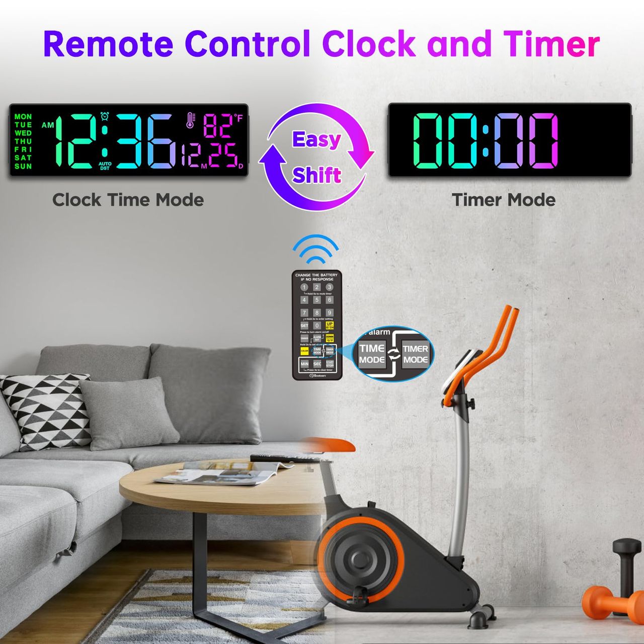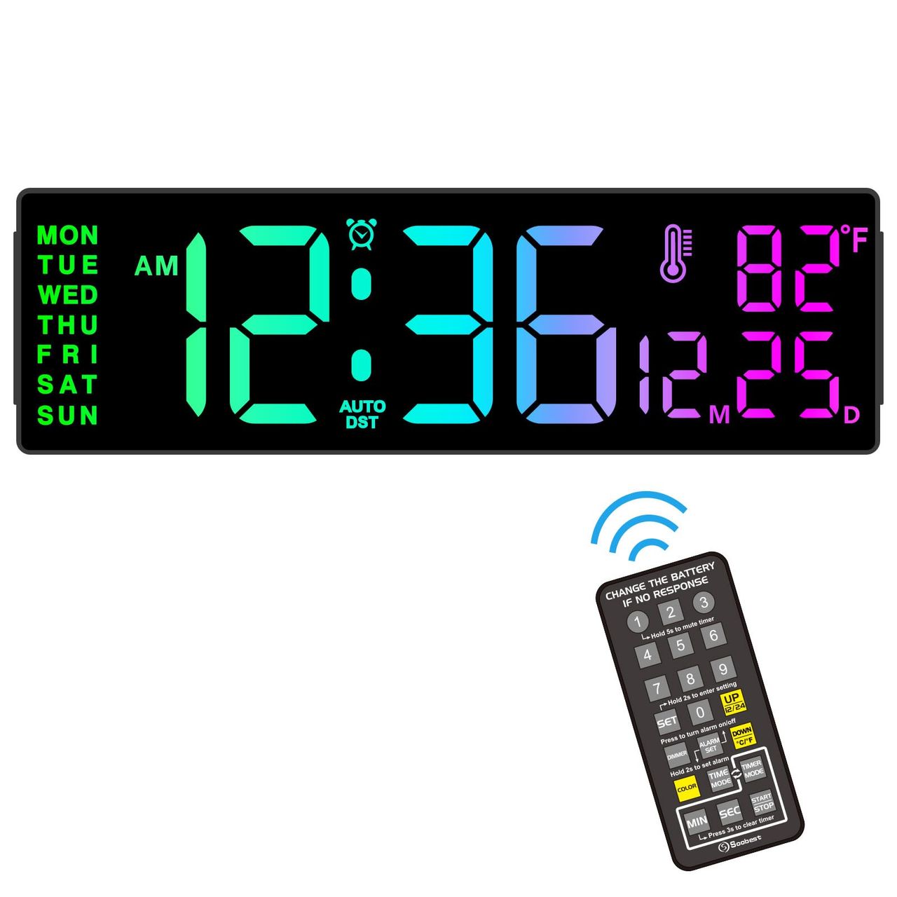 - - O Relógio De Parede Digital Soobest Rgb Tem Uma Tela Led Grande De 35.6 Cm E Visor De Dígitos De 7.9 Cm Que Pode Ser Reconhecido Por Pessoas Com Deficiência Visual Ou Idosos Idosos Em Um Distância Interna De Qualquer Angg Les. Este Relógio Digital Tem Até 8 Modos De Cores Rgb: 4 Cores Puras Fixas E 4 Cores Rgb Incluídas, O Que O Torna Uma Decoração Perfeita Para Sala De Estar.
