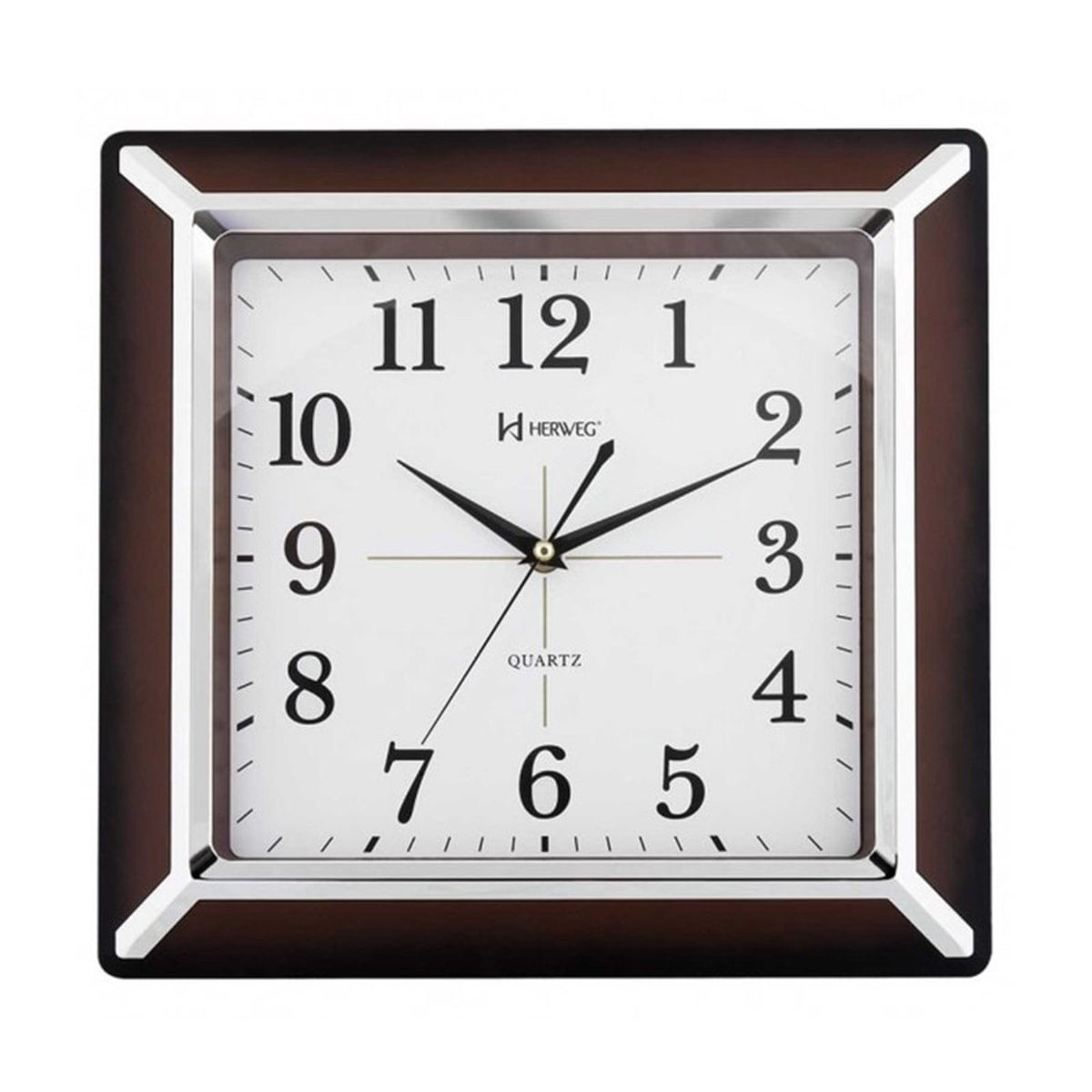 Relógio de Parede - 6268-109.Estilo: Moderno..Medidas:.Altura do relógio: 35,5 cm.Largura do relógio: 35,5 cm.Espessura do relógio: 4 cm..Cores Disponíveis:.Marrom Fosco com detalhes Prata..Informações sobre o produto.Base: Plástico pintado.Fino acabamento para pessoas exigentes..Acompanha:.Manual de Instruções.Certificado de Garantia.Embalagem Original.Nota Fiscal