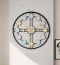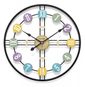 Esse Relógio Tem Formato Redondo, Em Estrutura 3d, Em Metal, Números Alternados Com Romanos, Em Verde, Laranja E Lilás, Na Base Toda Preta