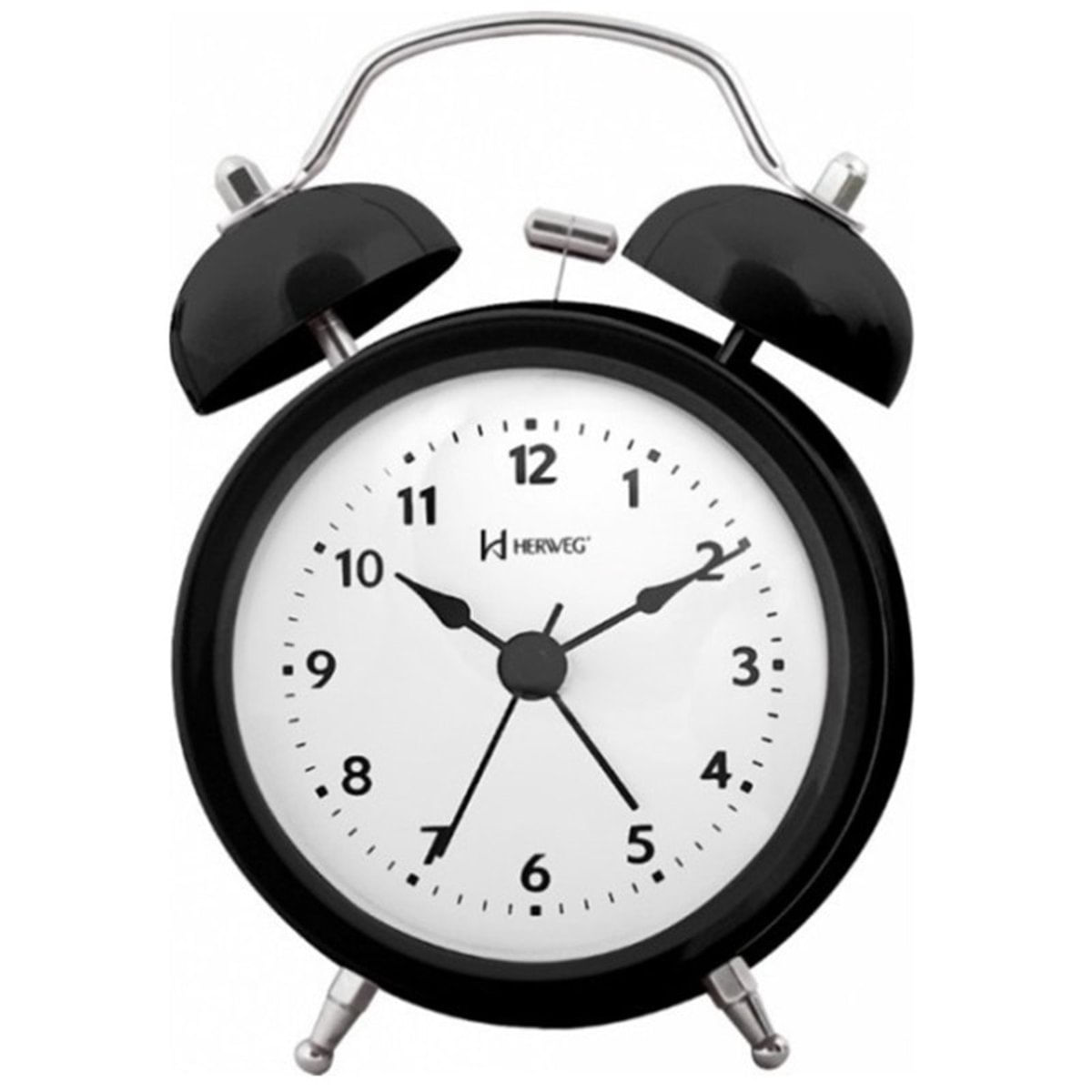 Modelo: 2707-034..Estilo: Decorativo..Medidas: 8,0 D x 4,5E cm..Características Técnicas: Usa pilha AA (não acompanha produto)..Cor: Preto..Função: Despertador..Tipo: Anológico..Estilo: Retrô..Quartz