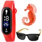 Relógio Digital Infantil Prova Dagua + Oculos Proteção Uv Proteção Uv Verão Menino Vermelho Presente