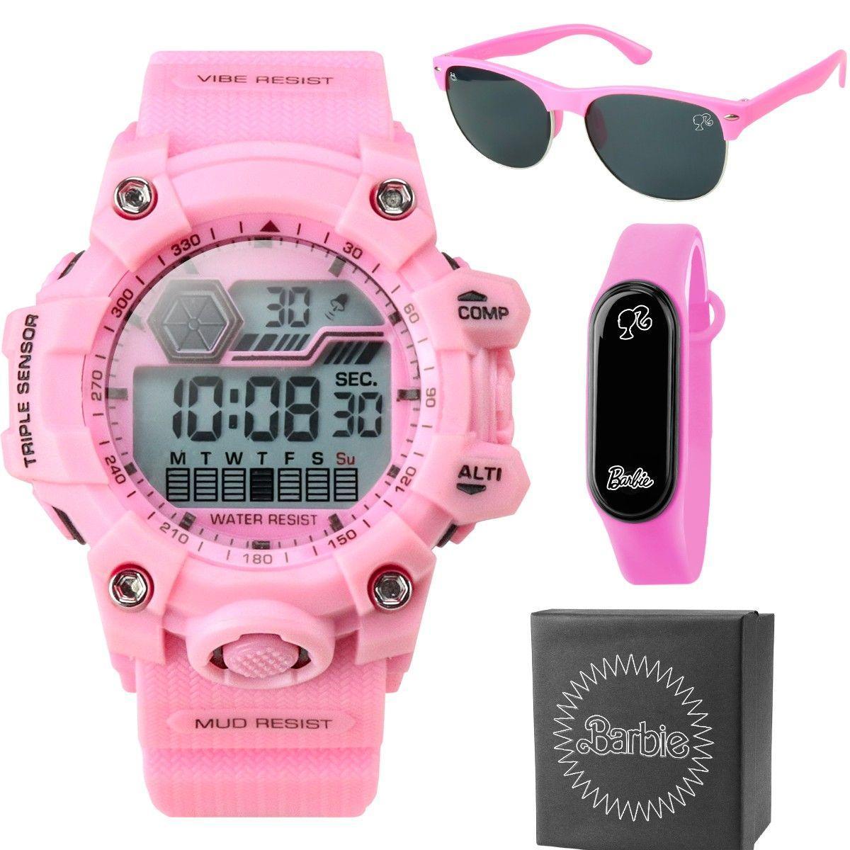 Relogio Digital Prova Dagua Infantil + Oculos Sol Silicone Presente Criança Adolescente