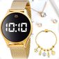 Relogio Feminino Digital Dourado + Pulseira + Colar + Brinco