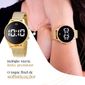 O Relógio Feminino Digital Orizom Maria É Um Modelo Redondo, Com Diâmetro Da Caixa De Aproximadamente 3,5 Cm E Cor Dourado Banhado. O Mostrador Preto Com Números Brancos Traz Um Toque Sofisticado, E A Pulseira De Silicone Ajustável Se Adapta A Qualquer Tamanho De Pulso.