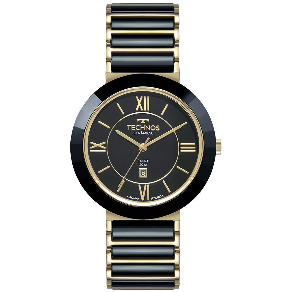 Relógio Technos Ceramic Feminino Preto Com Detalhes Em Dourado. Além Do Vidro De Safira, Este Modelo Foi Desenvolvido Totalmente Em Cerâmica, Um Material Muito Valorizado Na Indústria Relojoeira Pela Vantagem De Ser Resistente À Arranhões, Livre De Corrosão, Leve E Durável, Além De Conter Um Brilho Característico Inigualável. Produto Original Da Marca Technos.