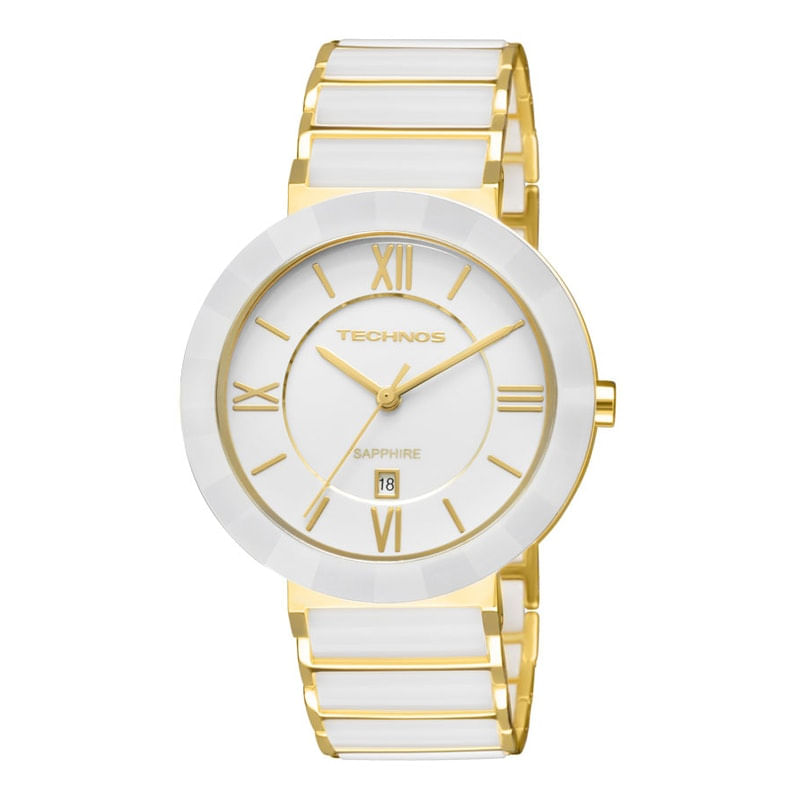 A Technos desenvolve relógios que combinam alta qualidade, beleza e alta tecnologia. Ela possui diversas coleções para pessoas de diferentes estilos...Relógio Technos Feminino Elegance Ceramic/Sapphire Analógico 2015BV/4B..Peso Aproximado: 104 gramas.Cor da Caixa: Dourada, Outras.Cor da Pulseira: Dourada, Outras.Gênero: Feminino.Material da Caixa: Aço Inoxidável, Cerâmica.Material da Pulseira: Aço Inoxidável, Cerâmica.Resistência à Água: 5 ATM.Diâmetro da Caixa: 40 mm.Tipo de Mecanismo: Analógico Simples Com Calendário.Estilo: Fashion.Marca: Technos.Fundo: Rosqueado.Vidro: Safira...Garantia: 1 ano