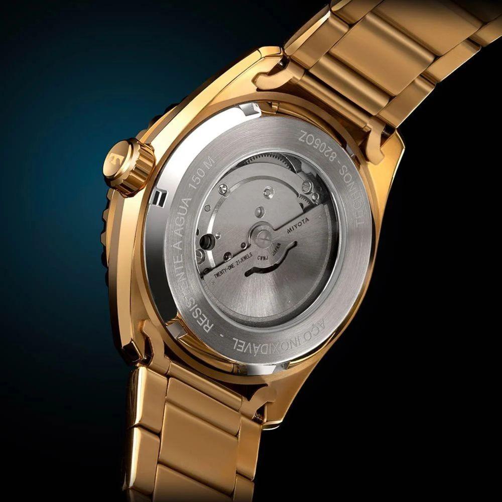 Relógio Technos Diver Automático 8205oz/1a Douradorelógio Technos Diver Automático 8205oz/1a Douradorelógio Technos Automático Diver Apresenta O Clássico Design De Mergulho, Inspirado Nos Modelos Lançados Pela Technos Na Década De 70, Que Fizeram História No Brasil. Ele Conta Com A Precisão Do Maquinismo Automático Japonês Miyota, Com 21 Jewels E Reserva De Marcha De 42 Horas, Além Da Presença Do Calendário Day-date E Fundo De Vidro Rosqueado, Que Permite A Visualização Do Movimento Mecânico Das Engrenagens. O Modelo Também Apresenta Elementos Fundamentais Para Aventuras Submersas, Como O Aro Externo Giratório Unidirecional Com Acabamento Corrugado E Mostrador Na Cor Preto Com Efeito Luminescente Nos Ponteiros E Marcadores De Hora, Além Dos Marcadores De Hora Em Formas Geométricas, Fator Que Facilita A Leitura Das Horas. Seu Sistema De Impermeabilização É Configurado Pela Tripla Vedação Na Coroa E Botões De Acionamento, Além Da Coroa Ser Rosqueada Para Oferecer Ainda Mais Segurança Ao Mergulhar. Produto 100% Em Aço Inoxidável, Banhado Em Dourado, Com Maquinismo Automático Japonês Miyota, Tamanho De Caixa 43mm E Resistência À Água De 150 Metros. Acompanha Estojo Especial.especificações Técnicas Mecanismo: Automático - Miyota Com 21 Jewels - Reserva De Marcha De 42h. Gênero: Masculino Visor: Azul Vidro: Safira Funções: Calendário Day-date, Case Back Transparente, Aro Giratório Unidirecional, Prova D'água: 150m Características: Com Caixa E Pulseira Em Aço Inoxidável Diâmetro Da Caixa: 43 Mm Garantia: 1 Ano Pelo Fabricante Technosrelógio 100% Original, Acompanha Caixa, Manual, Certificado De Garantia E Nota Fiscal. Normal 0 21 False False False Pt-br X-none X-none /* Style Definitions */ Table.msonormaltable {mso-style-name:tabela Normal, Mso-tstyle-rowband-size:0, Mso-tstyle-colband-size:0, Mso-style-noshow:yes, Mso-style-priority:99, Mso-style-parent:, Mso-padding-alt:0cm 5.4pt 0cm 5.4pt, Mso-para-margin-top:0cm, Mso-para-margin-right:0cm, Mso-para-margin-bottom:8.0pt, Mso-para-margin-left:0cm, Line-height:107%, Mso-pagination:widow-orphan, Font-size:11.0pt, Font-family:calibri,sans-serif, Mso-ascii-font-family:calibri, Mso-ascii-theme-font:minor-latin, Mso-hansi-font-family:calibri, Mso-hansi-theme-font:minor-latin, Mso-bidi-font-family:times New Roman, Mso-bidi-theme-font:minor-bidi, Mso-fareast-language:en-us,}somos Revendedores Oficial E Autorizado Do Grupo Technos, Todos Os Relógios Comercializados Pela Nossa Empresa Possuem Garantia Nacional Do Fabricante E Caso O Produto Que Adquiriu Apresente Algum Defeito Durante O Período Da Garantia, Basta Encaminhá-lo Diretamente À Assistência Técnica Mais Próxima De Sua Região, Sempre Acompanhado Do Certificado De Garantia E Nota Fiscal.