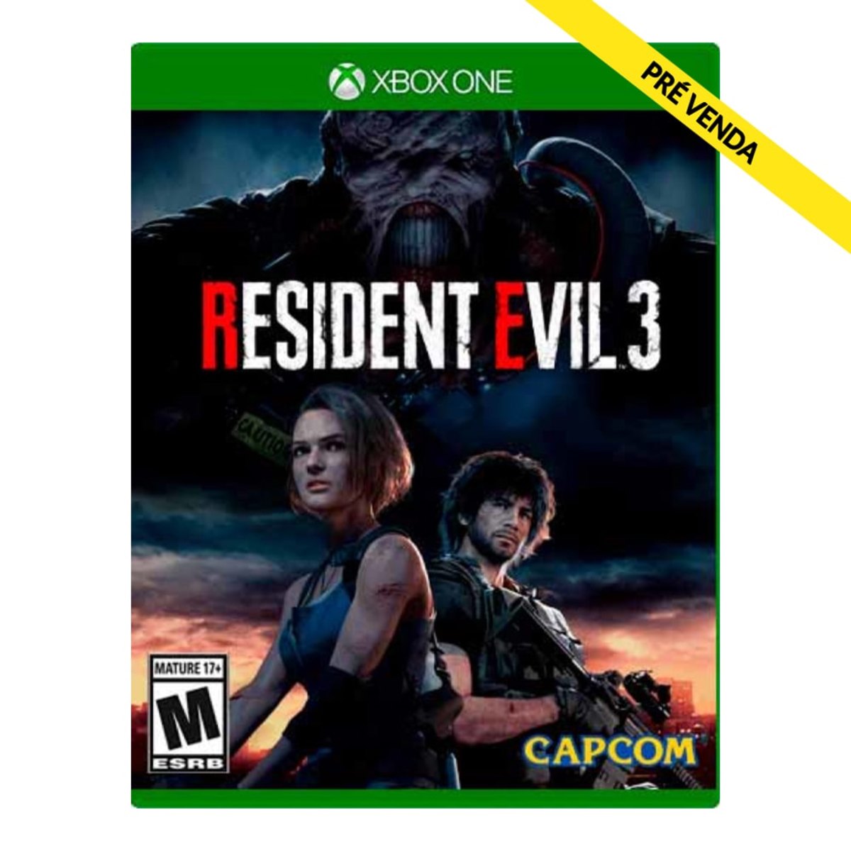 Produto em Pré-Venda. Lançamento previsto para o dia 03/04/2020...Presencie os eventos que ocorreram em Raccoon City em um Resident Evil 3 totalmente reimaginado, que também incluirá o Resident Evil Resistance, uma experiência multijogador online assimétrica de 4 contra 1 em seu lançamento em 3 de abril de 2020 para Xbox One e One X...Residente Evil 3..Em Resident Evil 3, Jill Valentine, um membro do S.T.A.R.S. e uma das heroínas mais icônicas dos videogames, tenta escapar de uma cidade consumida por zumbis e outras criaturas horripilantes. Criado com a própria engine da Capcom, a RE Engine, Resident Evil 3 usa de uma jogabilidade moderna para combinar ação com o clássico terror de sobrevivência em alta definição vívida...Os acontecimentos angustiantes de Jill Valentine, um membro do S.T.A.R.S. em Resident Evil 3 se passam nas terríveis horas que precedem os eventos de Resident Evil 2, dando uma nova perspectiva ao sofrimento dos moradores de Raccoon City. Qualquer esperança de escapar é frustrada por outra estrela da franquia Resident Evil: a imponente Arma Bio-Orgânica, Nemesis. Essa brutal e inteligente monstruosidade usa um arsenal bélico de extremo poder para eliminar impiedosamente qualquer membro sobrevivente do S.T.A.R.S. na cidade, sendo Jill seu último alvo...Residente Evil Resistance..Pela primeira vez na série Resident Evil, experiencie tensas partidas online assimétricas de 4 contra 1 que convidam jogadores a criar horripilantes desafios para outros jogadores superarem..Canalizando a tensa atmosfera característica da série e a resolução de quebra-cabeças em um novo formato de jogabilidade, Resident Evil Resistance permite aos jogadores arquitetar experimentos sádicos ou trabalhar em equipe para escapar. Desenvolvido em parceria com o NeoBards Entertainment, Resident Evil Resistance traz um novo pesadelo à vida, usando de uma jogabilidade de alta qualidade e a marcante fidelidade visual da engine própria da Capcom, a RE Engine...No Resident Evil Resistance, quatro sobreviventes devem trabalhar estrategicamente, usando suas respectivas habilidades especiais para escapar de um Vilão observador em uma partida de três estágios repleta de armadilhas, quebra-cabeças e horrores. Cada um dos sobreviventes pode usar uma variedade de acessórios, armas e habilidades pessoais únicas para ajudar sua equipe a vencer os desafios do Vilão e sobreviver aos seus planos sinistros...O Vilão planeja seu experimento mortal usando uma rede de câmeras de segurança que monitora todos os movimentos dos sobreviventes. Além de manipular remotamente o ambiente, cada Vilão usa um conjunto de cartas que invoca criaturas terríveis, insere armadilhas e transforma câmeras em armas para separar e dominar suas cobaias. Cada Vilão possui suas próprias especialidades para manter o experimento controlado, como melhorar suas monstruosas criações, armadilhas ou câmeras de segurança. Se o Vilão preferir dar um toque pessoal, ele pode escolher controlar diretamente qualquer zumbi inserido ou até mesmo as destrutivas Armas Bio-Orgânicas como o mortal Tyrant - algo completamente novo na franquia Resident Evil...Para maiores informações, imagens e vídeos, clique aqui e acesse a nossa landing page especial sobre o Resident Evil 3