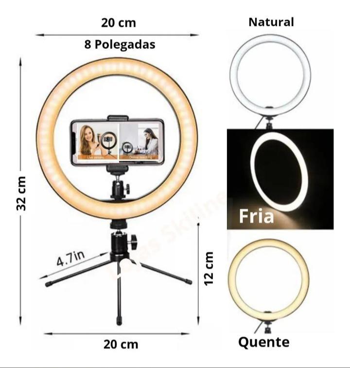 Ring Light 8¨pol- 20cm Com Mini Tripé