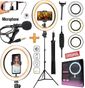 Ring Light Completo Profissional Celular Suporte Tripé Luz Led Anel Iluminação 26cm Selfie Makeup Microfone + Bluetooth