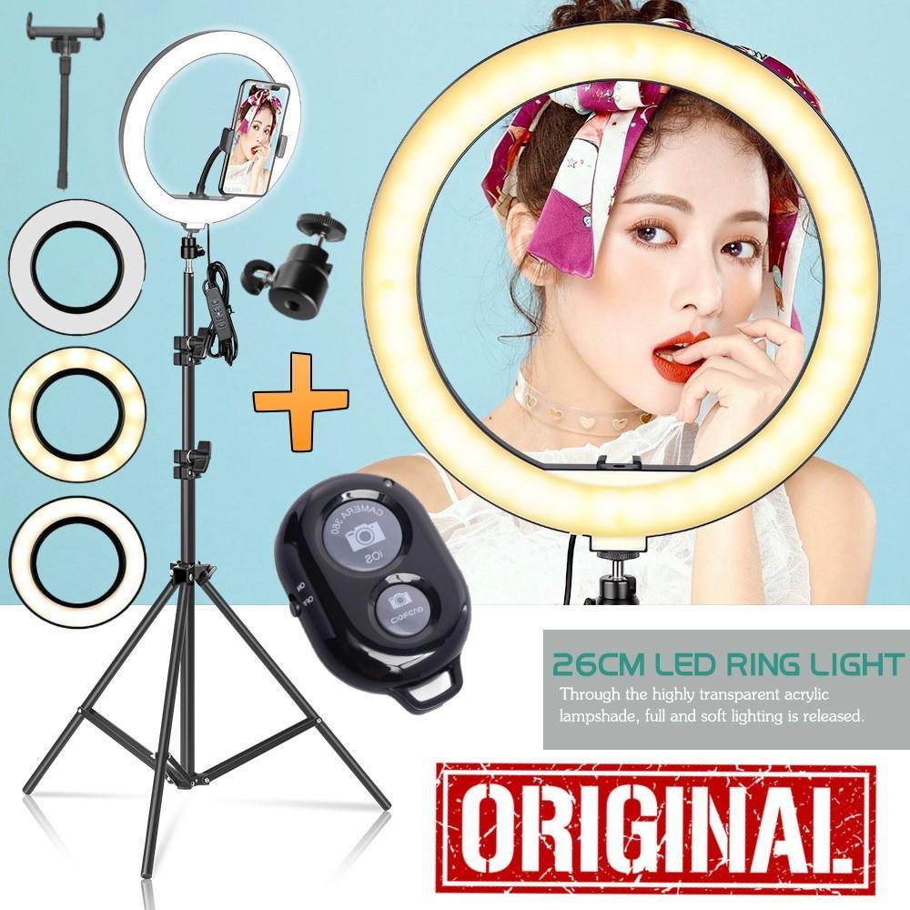 Ring Light Completo Profissional Celular Suporte Tripé Luz Led Anel Iluminação 26cm Selfie Makeup Microfone + Bluetooth