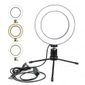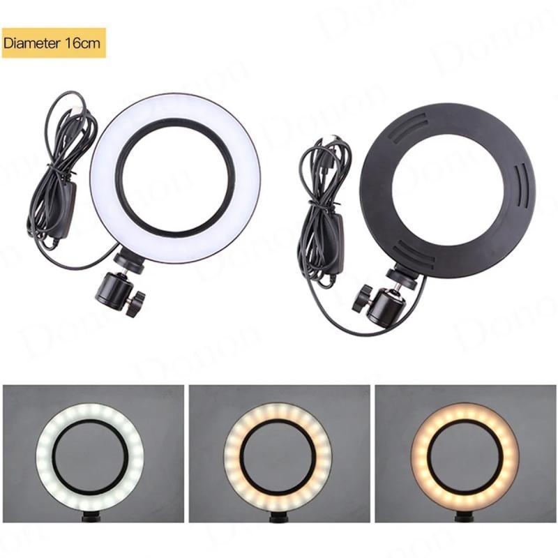 Ring Light De Mesa Iluminador De Led Tripé 6 Polegadas 16cm Iluminador Ring Light 6 Polegadas 16cm Usb Led 5500k Com Apoio De Mesa Iluminador Ring Light De 16 Centímetros (6,5 Polegadas), Desenvolvido Para Maquiadores, Fotógrafos, Cinegrafistas E Etc, Que Buscam Uma Ótima Maneira De Iluminar Com Perfeição. Você Pode Ajustar O Ângulo Da Iluminação Por Possuir Um Suporte Articulado. É Possível Controlar As Diferentes Temperaturas De Cores Através Do Controle De Ajuste Que Vai De 3200k À 5500k. Na Frente Dos Leds Tem Um Filtro Difusor Para Suavizar A Luz Espalhando A Luz Com Maior Uniformidade. A Alimentação Do Iluminador É Através De Cabo Usb (não Acompanha Adaptador De Tomada E Não Possui Bateria Interna Recarregável), Você Pode Utilizar Um Adaptador De Tomada De Celular Para Ligar Ou Conectar No Usb Do Computador Ou Outro Equipamento Que Forneça 5v Usb. O Cabo Usb Deverá Estar Sempre Ligado Para Funcionar. O Ring Light É Acompanhado De Um Apoio De Mesa. O Apoio Também Serve Para Utilizar Em Outros Equipamentos De Até 1kg De Peso, Como Projetores, Celulares E Etc. É Recomendado E Extremamente Eficaz Para A Macro Fotografia, Fotografia Médica, Odontológica, Científica, Hobby E Para A Iluminação/fotografia De Produções De Maquiadores. Fácil De Usar, Durável E De Pouco Peso, Facilitando O Transporte. Cor De Luz: Branco Quente, Branco Frio E Branco Neutro Especificações:diâmetro : 16cm (6,5 Polegadas)alimentação: 5v Usbcomprimento Aproximado Do Cabo: 1,90mtemperatura De Cor: 3200k - 5500k Ajustávelângulo Regulável: Simpotência: 10w