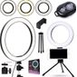 Ring Light Iluminador Led Flash Anel Suporte Celular Universal Makeup Tripé De Mesa + Controle Bluetooth Gravação Vídeo
