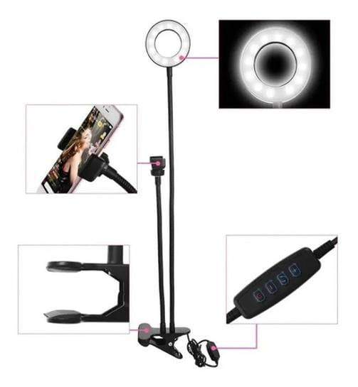 01 Ring Light Com Ajuste De Luminosidade Com Grampo De Mesa Suporte Para Celular Para Selfie - Videos - Live - Youtube Com Luminária Led.