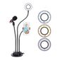 Ring Light Iluminador Led Com Suporte De Celular Microfonegaranta A Melhor Qualidade Do Seu Conteúdo Com Esse Kit Perfeito Para Youtuber E Blogueiros/as De Ringlight. Possui Dois Suportes De Celular Reguláveis Com 360 Grau (pode Usar O Celular Horizontalmente Ou Verticalmente) E Um Suporte Para Microfone Que Gira Em 360 Graus.alimentação Por Usb, Pode Ser Alimentado Por Fonte De Celular (não Acompanha Fonte). Possui Um Controle Que Regula Três Tons De Luzes: Neutro, Branca Fria E Branca Quente Com Intensidade Regulável.1 - Ring Light 10cm De Circunferência E Com Base Articulada (3 Tipos De Luzes)2 - Adaptador De Celular1 - Tripe De Mesa1 - Controle De Intensidade De Iluminação (3 Níveis)1 - Adaptador De Microfoneatenção:- Entrada Do Produto Usb É Compatível Com Fonte De Celular.