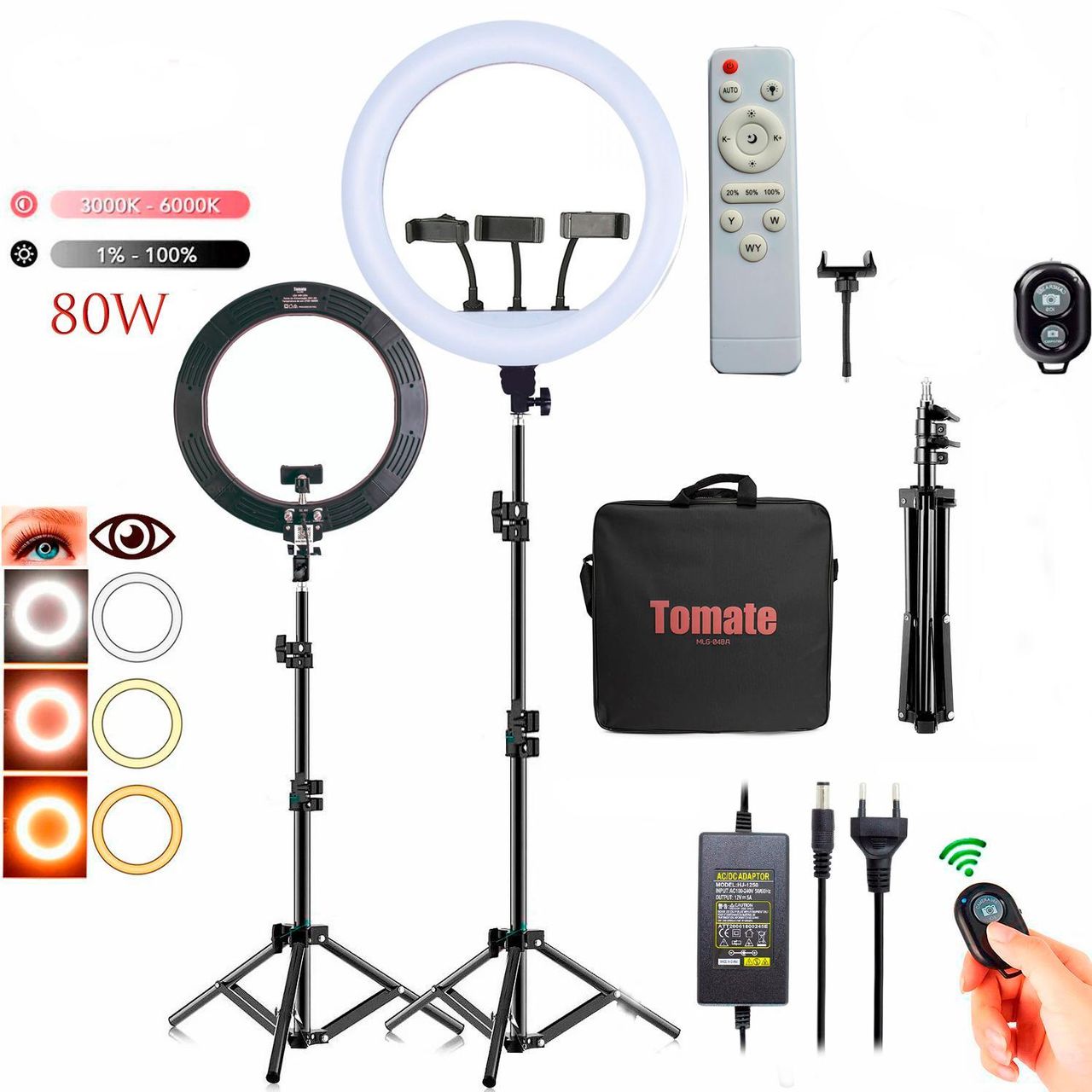 kit Ring Light Led Tomate Iluminador De 19 Polegadas 80w + Tripé Profissional 2.1m + Suporte Para Celular + Controle Remoto Bluetooth + Controle Remoto
