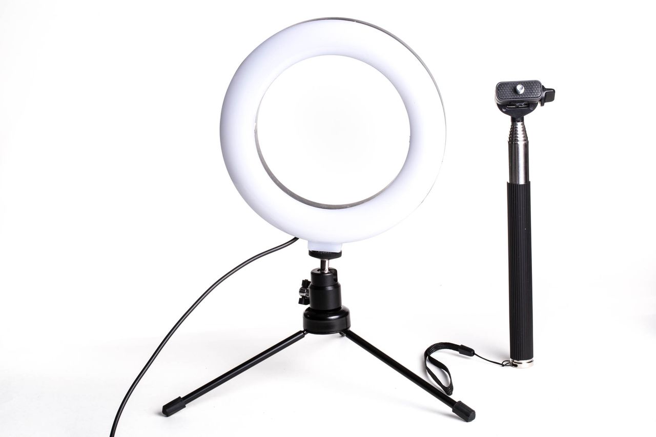 Ring Light USB para selfies, Lives e videoconferências Inclui mini tripé metálico e monopé com controle de potência NOTA: Não agende nenhum trabalho que dependa deste item antes de recebê-lo. Evite problemas caso ocorram atrasos, necessidades de troca, ou mesmo dificuldade de uso.