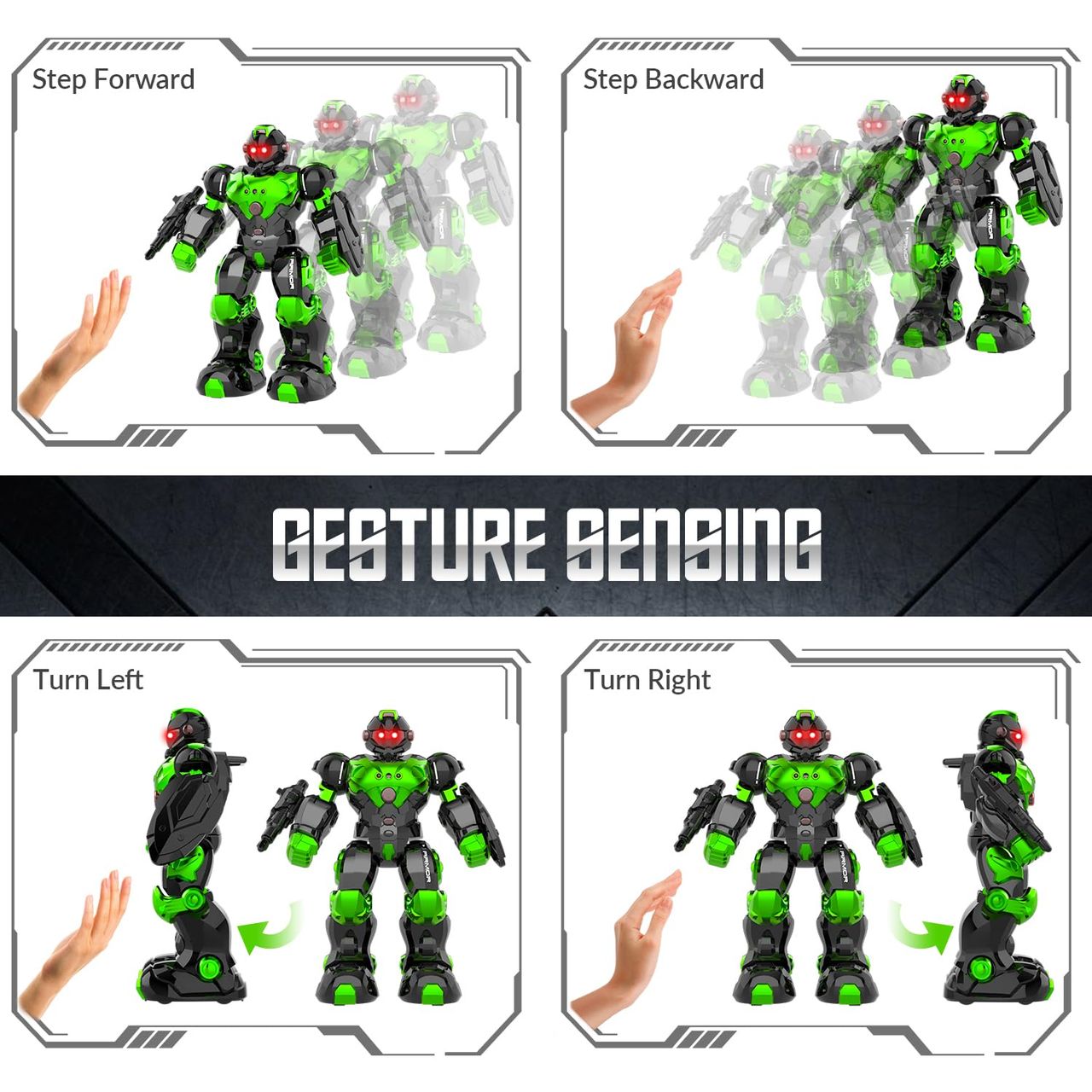 - [controle Remoto E Detecção De Gestos] Este Robô Inteligente Não Só Pode Ser Controlado Pelo Controle Remoto Com 2,4 Ghz, Mas Também Suporta Detecção De Gestos. O Brinquedo Robô Pode Sentir Suas Mãos Se Moverem Para Virar À Esquerda/direita, Deslizar E Andar Para Frente/para Trás.