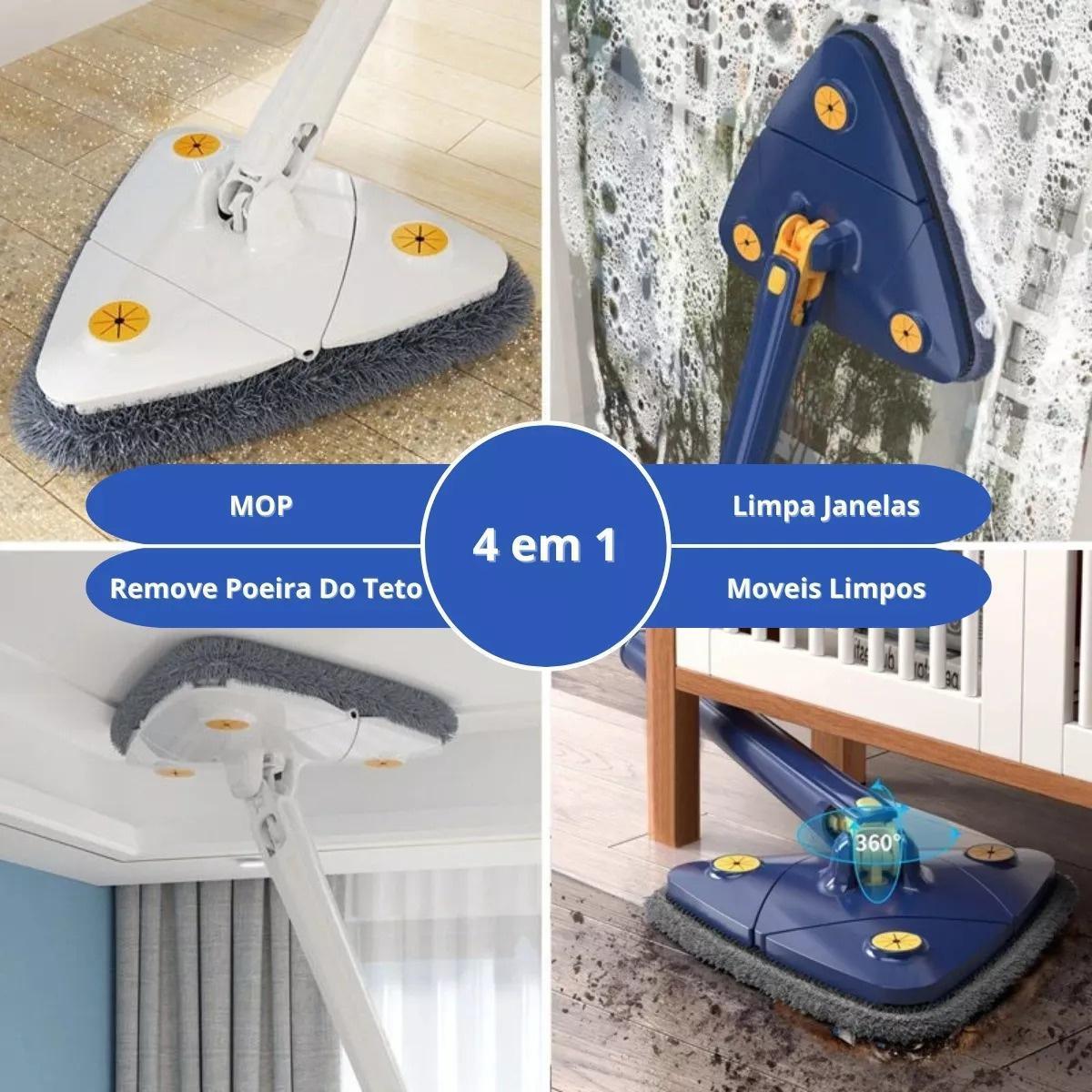 Torne A Limpeza Da Sua Casa Mais Fácil E Prática Com O Mop Esfregão 360 Triangular Sua Exclusiva Cabeça Giratória De 360 Graus E Design Triangular Revolucionário Permitem Alcançar Todos Os Cantos, Eliminando Com Facilidade A Poeira E Sujeira Em Locais Difíceis De Acessar.