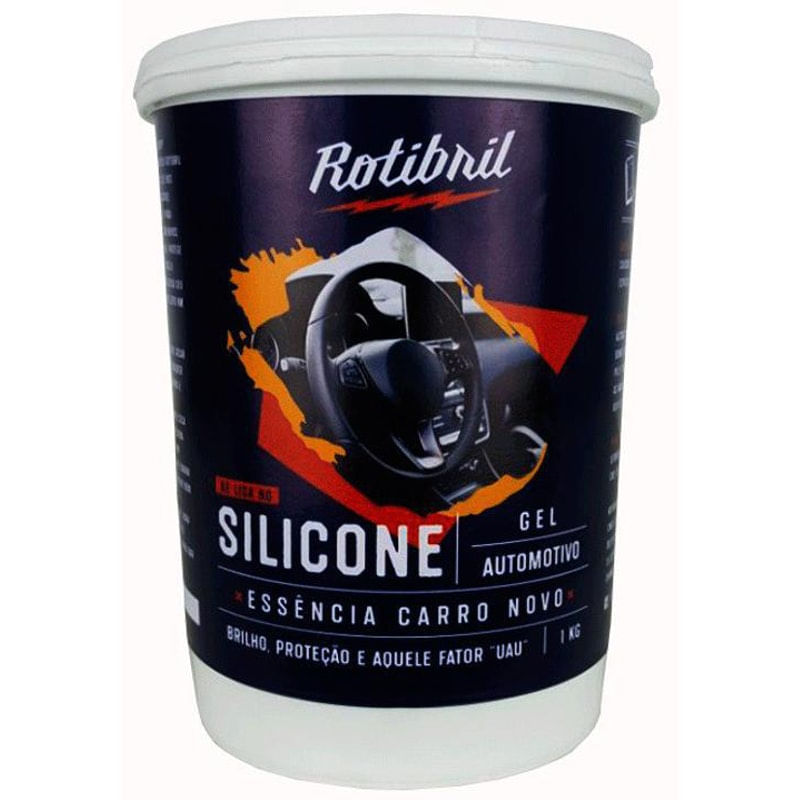 Rotibril Silicone Gel 1Kg..Esse é cheiroso mesmo..O silicone gel deixa os componentes do carro que são feitos de plástico e borracha como se fossem novos. Restaura a cor original e ainda deixa seu carro perfumado. Pra quem gosta do painel brilhando basta usar um pouquinho a mais do produto que ele ressalta muito bem...Modo de usar..O segredo é limpar a peça antes com um limpador de interiores apc..Aplique em pequenas porções e espalhe o silicone gel com auxílio de uma esponja aplicadora macia ..Deixe o silicone agir por alguns minutos..Lustre muito bem toda a superfície do painel com uma flanela de microfibra. ...Importante: o silicone gel rotibril não deixa o painel com o aspecto melado e não pega poeira. Basta seguir todas as indicações. Marca:ROTIBRIL Cor:Branco marca:Rotibril