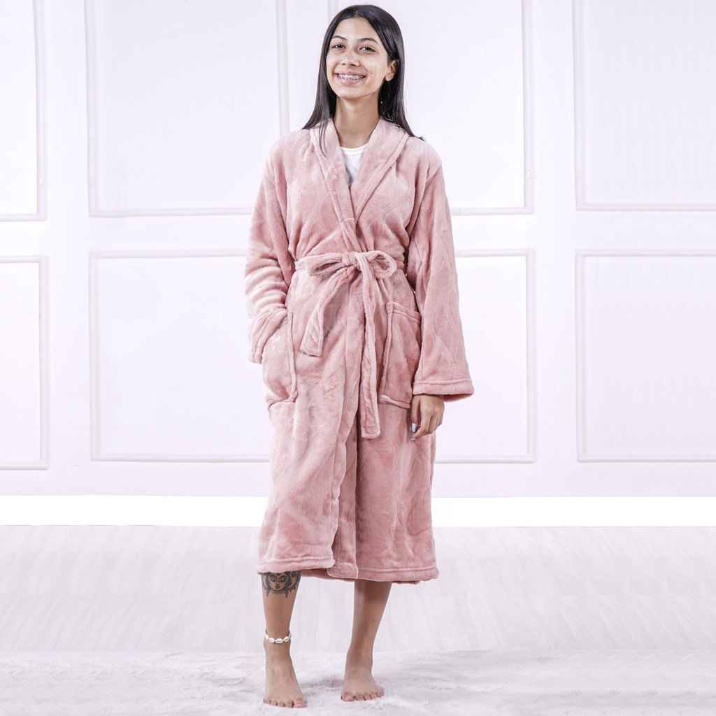 Roupão Microfibra Flannel Relieve Com Bolso Extra Macio Rosa Blush - P -