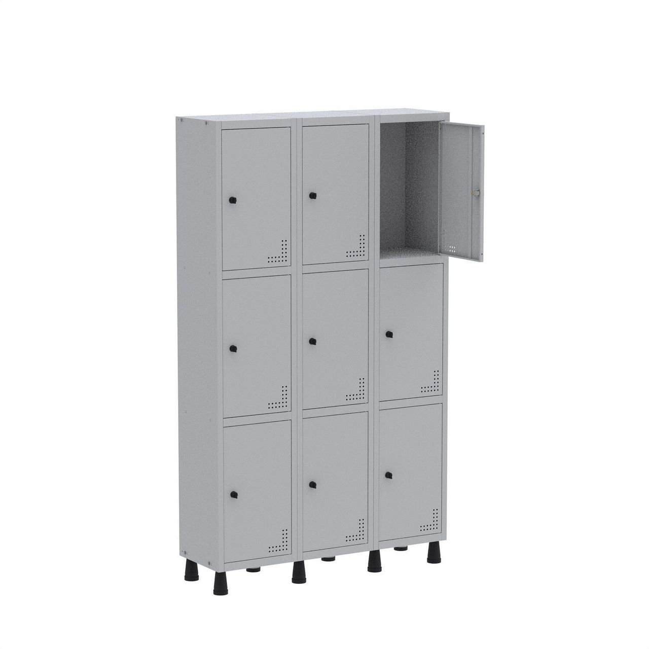 Armário Locker Guarda Volume Aço Light 9 Portas 103,5x179,5cm Cinza.
