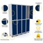 Roupeiro Aço Totalmente Montável Com Travas Invertidas Tipo Unha De Gato Que Dispensa A Utilização De Parafusos, 4 Portas Sobrepostas Em Aço Com Encaixe Total Dentro Do Vão, Com Fechamento Através De Pitão Para Cadeado. Ideal Para Guarda Volumes, Academias, Refeitórios, Empresas, Banheiro Vestuários E Diversas Outras Opções Para Ambientes Empresariais.características Técnicas:totalmente Montável, Dispensa A Utilização De Parafusosestrutura Chapas #24 E #26 (0,60mm E 0,45mm)8 Portas Com 1 Veneziana Para Ventilação E 1 Reforço Interno Por Portasistema De Fechamento De Varão De 3 Pontos Através De Pitão Para Cadeadocapacidade Por Prateleira/vão: 15kg (bem Distribuídos)2 Cabides De Nylon Por Compartimentopés Reguláveis Em Pvcpintura Eletrostática À Pó (tinta Híbrida) Em Todas As Coresmedidas Da Porta: 86a X 29l (cm)
