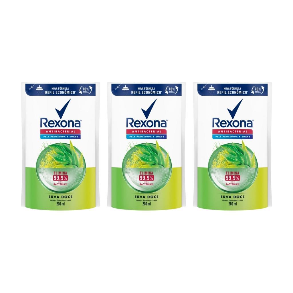 Sabonete Líquido Rexona Refil 200ml Antibacteriano Erva Doce - Kit Com 3un