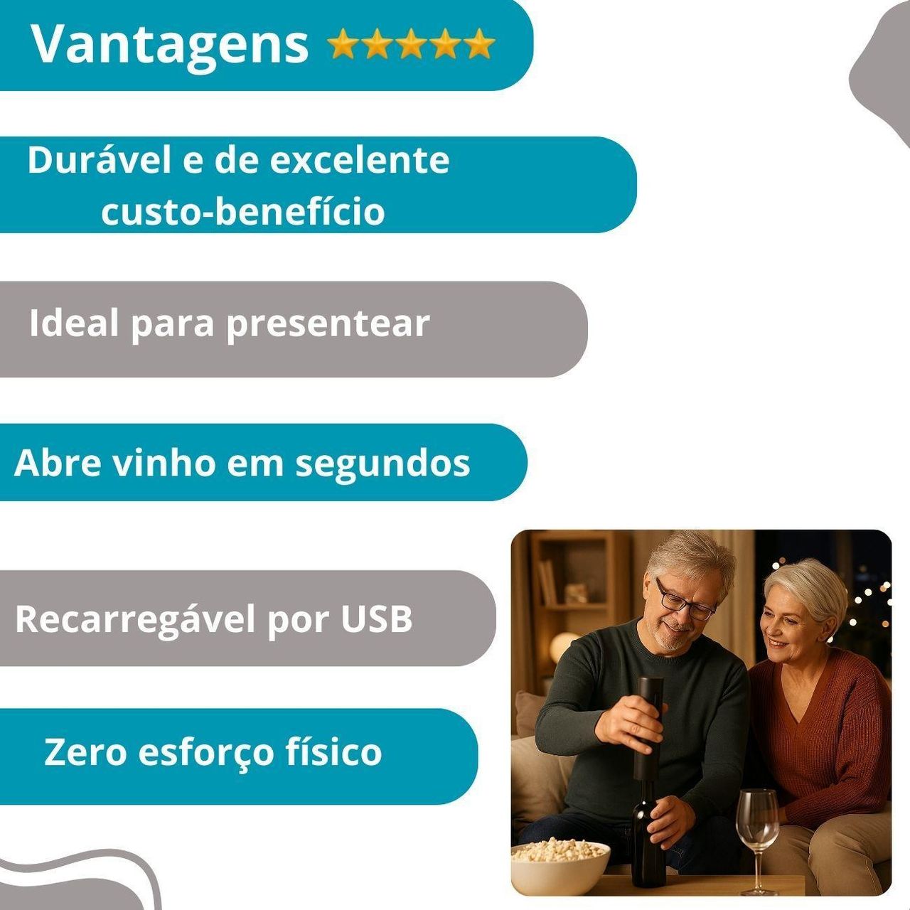 Abra Garrafas De Vinho Com Zero Esforço. Um Toque, Alguns Segundos E A Rolha Sai Sozinha. O Abridor Elétrico Torna O Ritual Do Vinho Mais Elegante, Rápido E Prazeroso. Ideal Para Jantares, Encontros, Churrascos, Presentes E Para Quem Não Quer Passar Vergonha Tentando Remover Rolhas Duras.