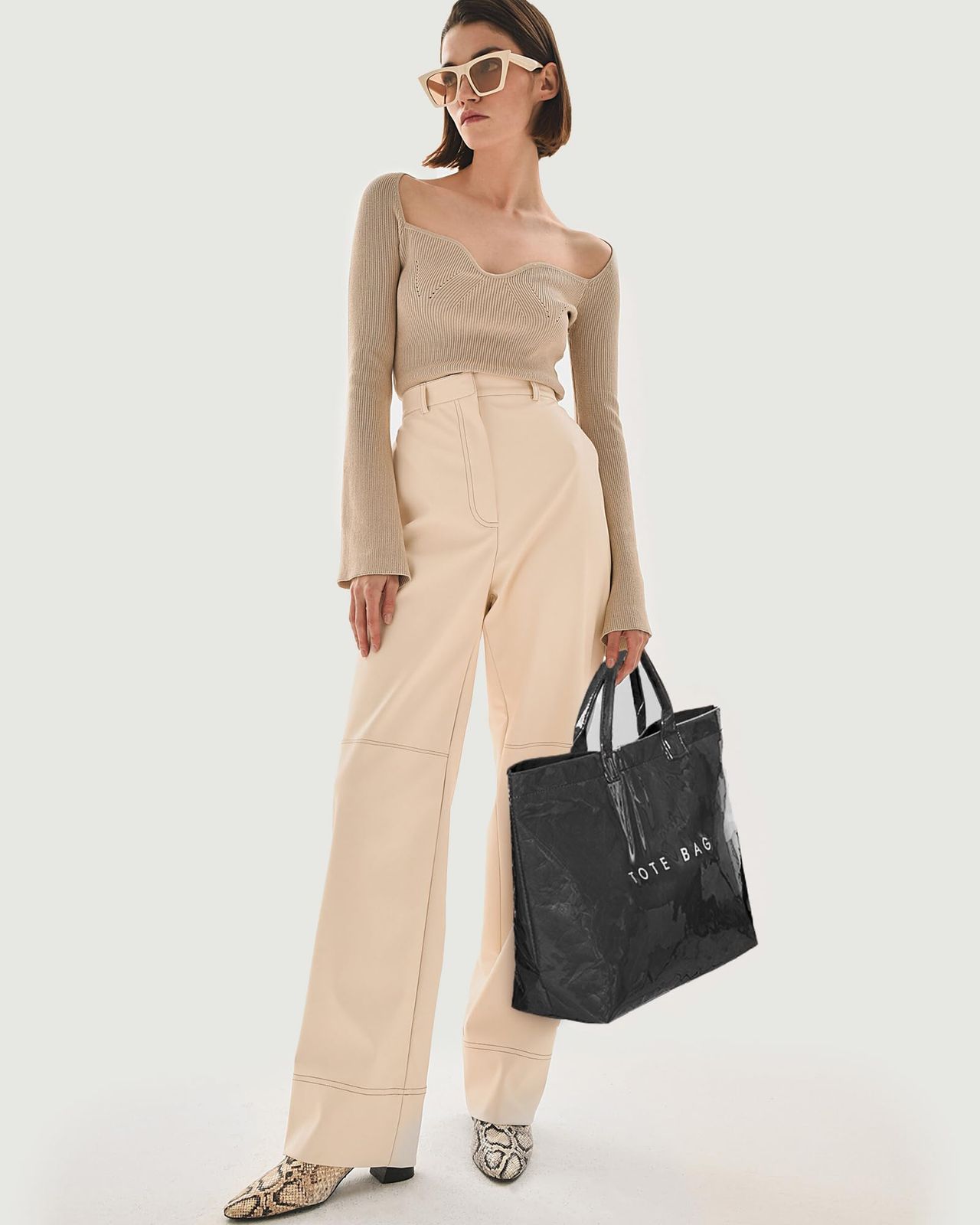 - 【bolsa Moderna 】a Sacola Possui Um Interior De Papel Kraft E Poliéster Com Uma Textura Única Que Melhora Sua Qualidade. O Exterior É Feito De Material De Pvc, Oferecendo Um Desempenho Brilhante E À Prova D'água