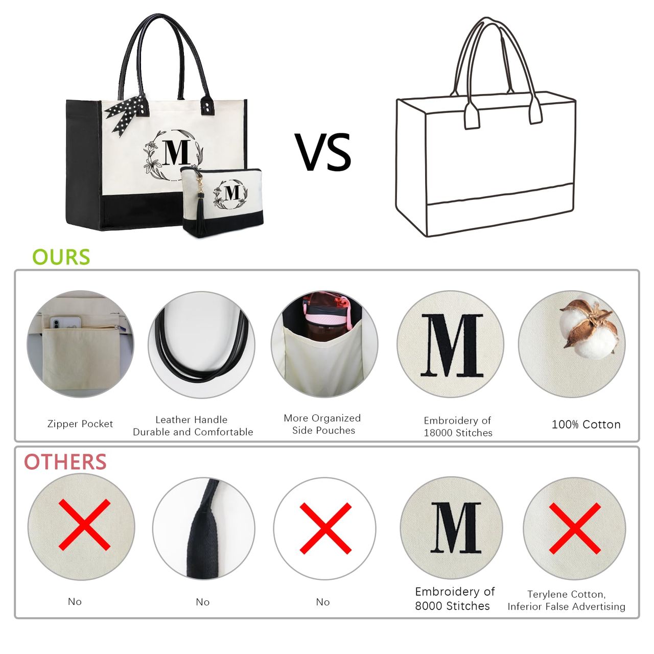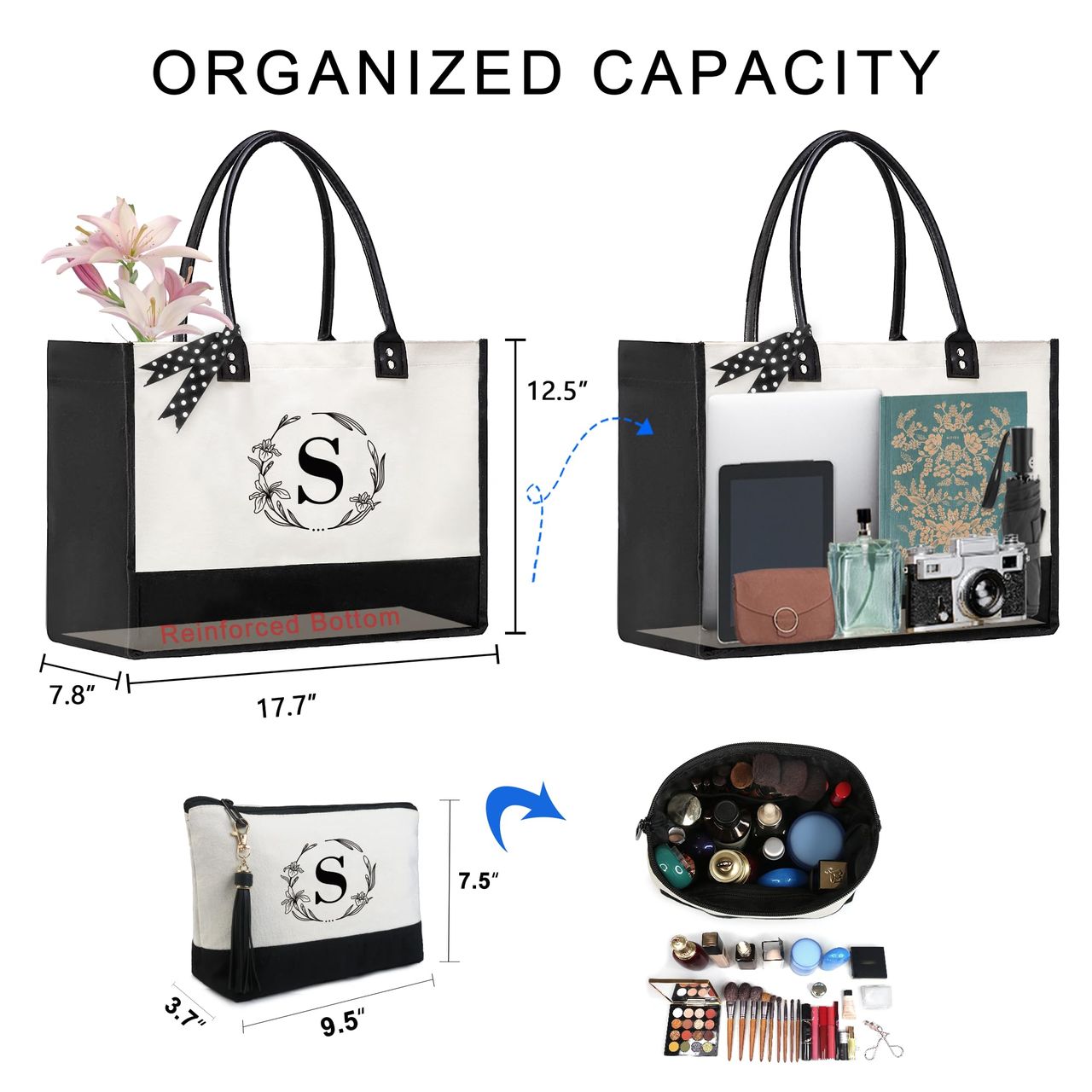 - Combinação Perfeita De Bolsa De Maquiagem: Esta Bolsa Feminina Também Tem Uma Bolsa Cosmética Independente, Pode Atender Melhor Às Suas Diferentes Necessidades. A Bolsa Inicial E A Bolsa De Maquiagem São Feitas De Lona 100% Natural De 368 G. A Bolsa De Presente De Aniversário Para Mulheres É Facilmente Lavável À Mão E De Longa Duração. (observação: Lavagem À Máquina Não É Recomendada.) As Sacolas Reutilizáveis Também Podem Ajudar Você A Reduzir Seu Impacto No Meio Ambiente.