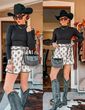 - Estampa Floral, Nó Lateral Na Cintura, Acabamento De Malha Preta, Minissaia Clássica Boho