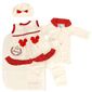 Conjunto De Roupa De Luxo Bege E Vermelho Com 5 Peças, É Uma Excelente Escolha Para O Seu Bebê, Com Um Acabamento De Ótima Qualidade E Super Lindo, Ideal Para A Sua Princesinha Nosso Enxoval É Totalmente Diferente Do Que Você Já Viu, Contendo Uma Touquinha De Bichinho, Um Coletinho Com Touca, Um Body Com Bordado De Girafinha E Uma Calça, Para Deixar Sua Filha Confortável E Super Linda