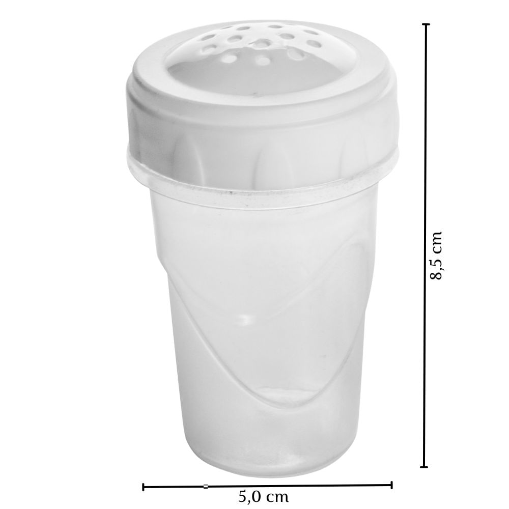 Conjunto Com 2 Potes Plásticos Incolores Com Tampa De Rosca Branca, Sendo 1 Com Diversas Perfurações, Indicada Para Sal E Pimenta E 1 Com Perfuração Única, Indicada Para Palitos De Dente. Ambos Têm Capacidade Para 90 Ml E São Produzidos Pela Plasútil Em Material Atóxico, Livre De Bisfenol-a (bpa Free) Em Sua Composição E Podem Ser Levados Ao Freezer E Ao Micro-ondas Com Total Segurança À Saúde. Seu Design Compacto Facilita O Armazenamento Em Qualquer Lugar, Tornando Sua Rotina Mais Prática.