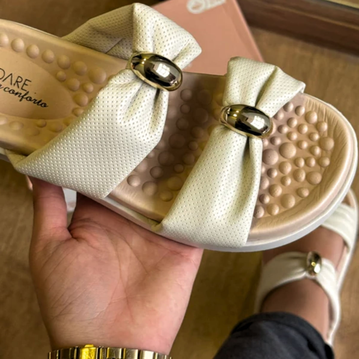 Sandália Feminino Papete Conforto Tiras Botton Ouro Modare 7178.122.29961 - Branco Off - 37