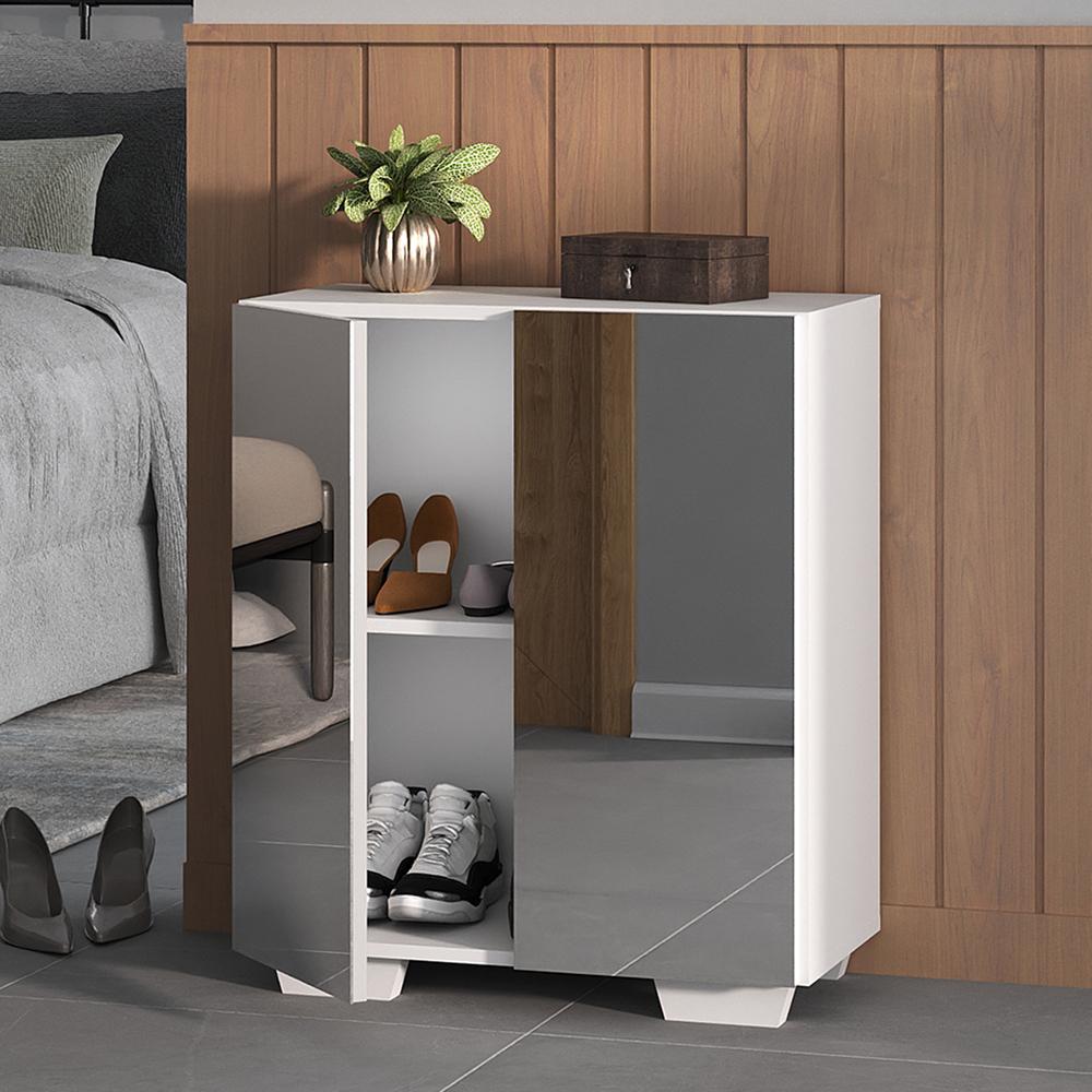 A Sapateira 2 Portas Com Espelho Nina Multimóveis É Produzida Em Mdp Com Acabamento Acetinado (cerca De 20% De Brilho), Que Garante Maior Durabilidade, Facilidade Na Limpeza, Além De Um Acabamento Superior. Com 2 Portas, Possui Um Excelente Espaço Interno Para Acomodar Seus Sapatos E Demais Pertences (a Prateleira Interna Suporta 8 Kg E O Tampo 9 Kg). Os Pés Quadrados, Em Polipropileno, Facilitam Na Hora Da Limpeza. Os Espelhos Na Porta Deixam O Móvel Mais Requintado, Criando Um Ambiente Moderno E Charmoso. Os Espelhos São De Vidro (o Que Evita Que A Imagem Fique Distorcida) E Lapidados, Ou Seja, Passam Por Um Processo Para Que As Bordas Não Fiquem Cortantes, O Que Garante Maior Segurança. Compacta, É Uma Excelente Opção Para Otimizar Seu Ambiente, Para Que Você Possa Aproveitá-lo Da Melhor Maneira Possível.conteúdo Da Embalagem:1 (uma) Sapateira1 (um) Kit Com 4 Pés Quadrados1 (um) Kit Com 2 Espelhosdimensões Do Produto Montado:altura: 74cm | Largura: 63cm | Profundidade: 32cm*você Pode Consultar As Medidas Internas Na Imagem Técnica Do Produto.cores Disponíveis:branco - Branco/preto - Branco/natural - Preto - Preto/branco - Preto/natural*as Cores Do Produto Podem Sofrer Variações De Tonalidade De Acordo Com As Configurações Do Seu Dispositivo.imagem Meramente Ilustrativa. Decoração Não Acompanha O Produto.produto Novo - Acompanha Nota Fiscal, Manual De Montagem E Certificado De Garantia.o Produto Será Entregue Desmontado E A Multimóveis Não Disponibiliza O Serviço De Montagem.