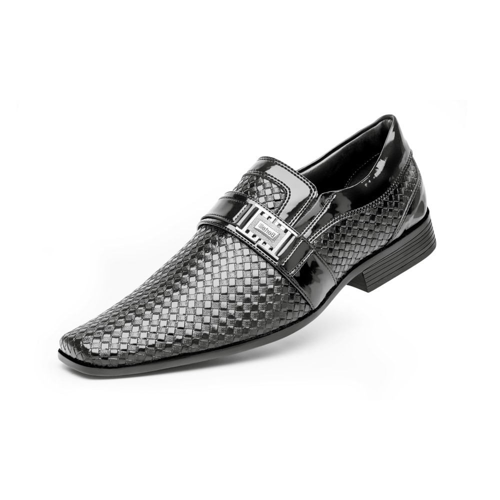 Sapato Social Verniz Texturizado Masculino Bico Quadrado Forrado Salto Baixo Quadrado
