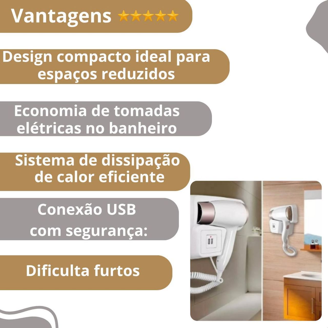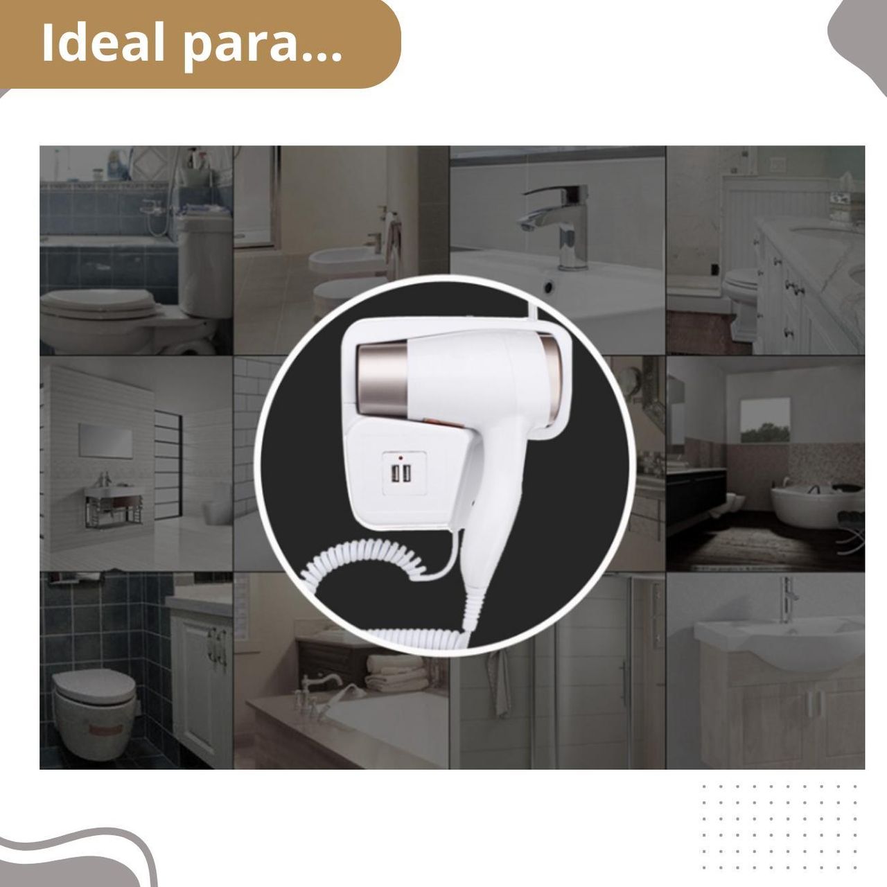 Adicione Sofisticação Ao Seu Banheiro Com O Secador De Cabelo De Parede, Perfeito Para Uso Em Casa Ou Em Ambientes Como Hotéis, Pousadas E Spas. Compacto, Leve E Poderoso, Este Secador Iônico Cuida Da Saúde Do Seu Cabelo, Proporcionando Um Brilho E Suavidade Excepcionais. Com Seu Design Resistente E Funcionalidade Avançada, Ele É Ideal Para Qualquer Tipo De Cabelo, Seja Liso, Encaracolado Ou Ondulado.