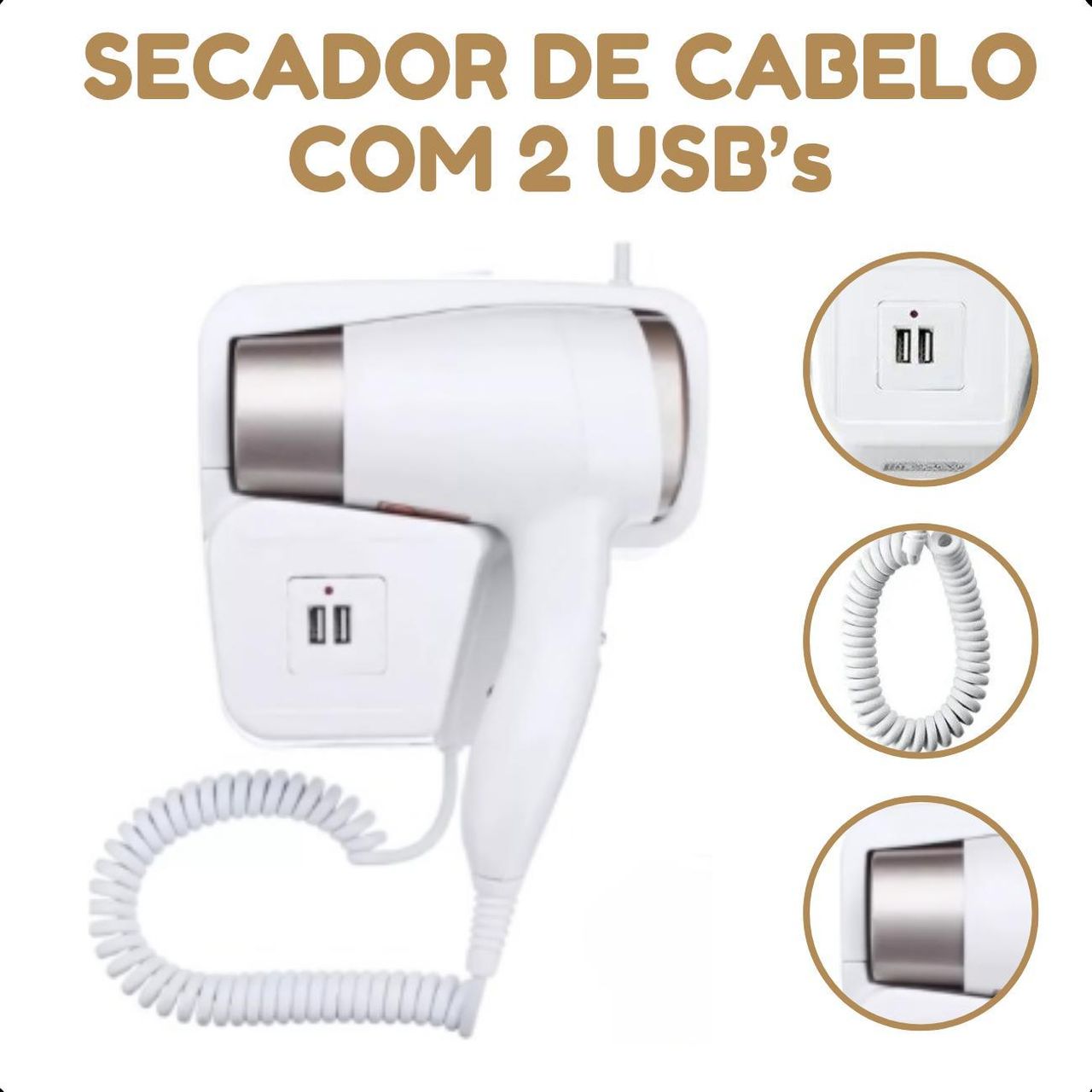 Secador De Parede Branco Compacto Com Usb 110v