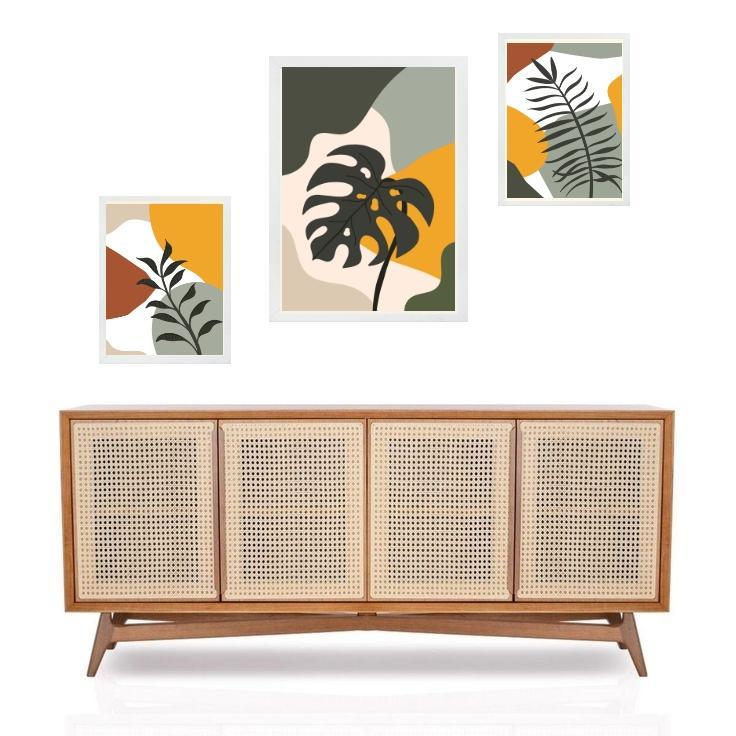 Set 3 Quadros Abstratos Folhas Boho