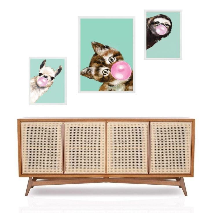 Set 3 Quadros Animais Bubble Gum Verde - Com Vidro