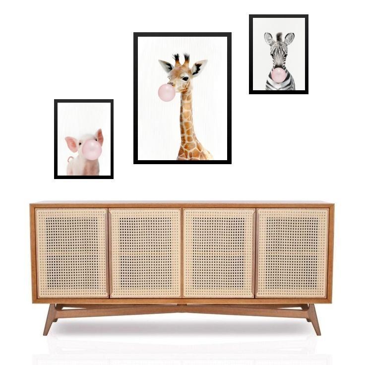 Set 3 Quadros Bichinhos Bubble Gum - Com Vidro