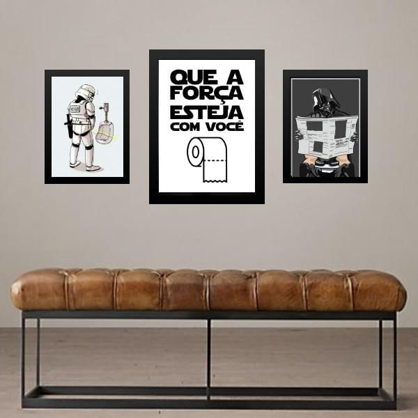 Set 3 Quadros Divertidos Banheiro Masculino - Com Vidro