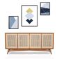 Set 3 Quadros Geométricos Azul E Dourado - Com Vidro