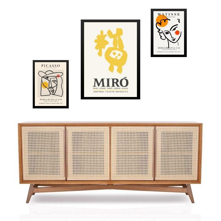 Set 3 Quadros Miró Matisse Picasso - Com Vidro