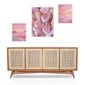 Set 3 Quadros Praia Cor De Rosa - Com Vidro