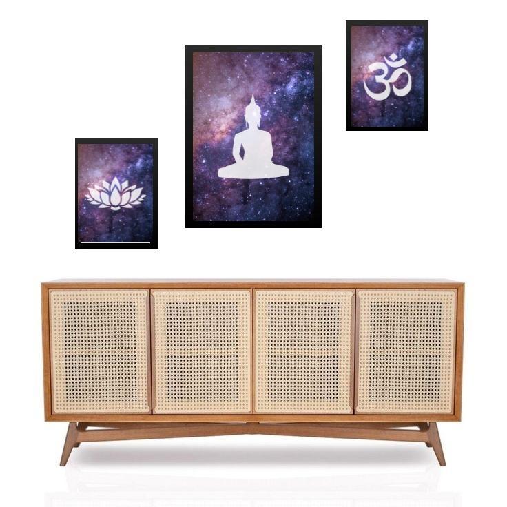 Set 3 Quadros Zen Buda Universo - Com Vidro