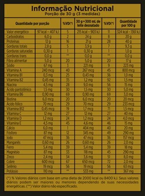 alto Teor De Proteínas: Oferece 12g De Proteínas No Pó E 21g Quando Preparado - Equivale A 28% Vdr(valor Diário Recomendado)