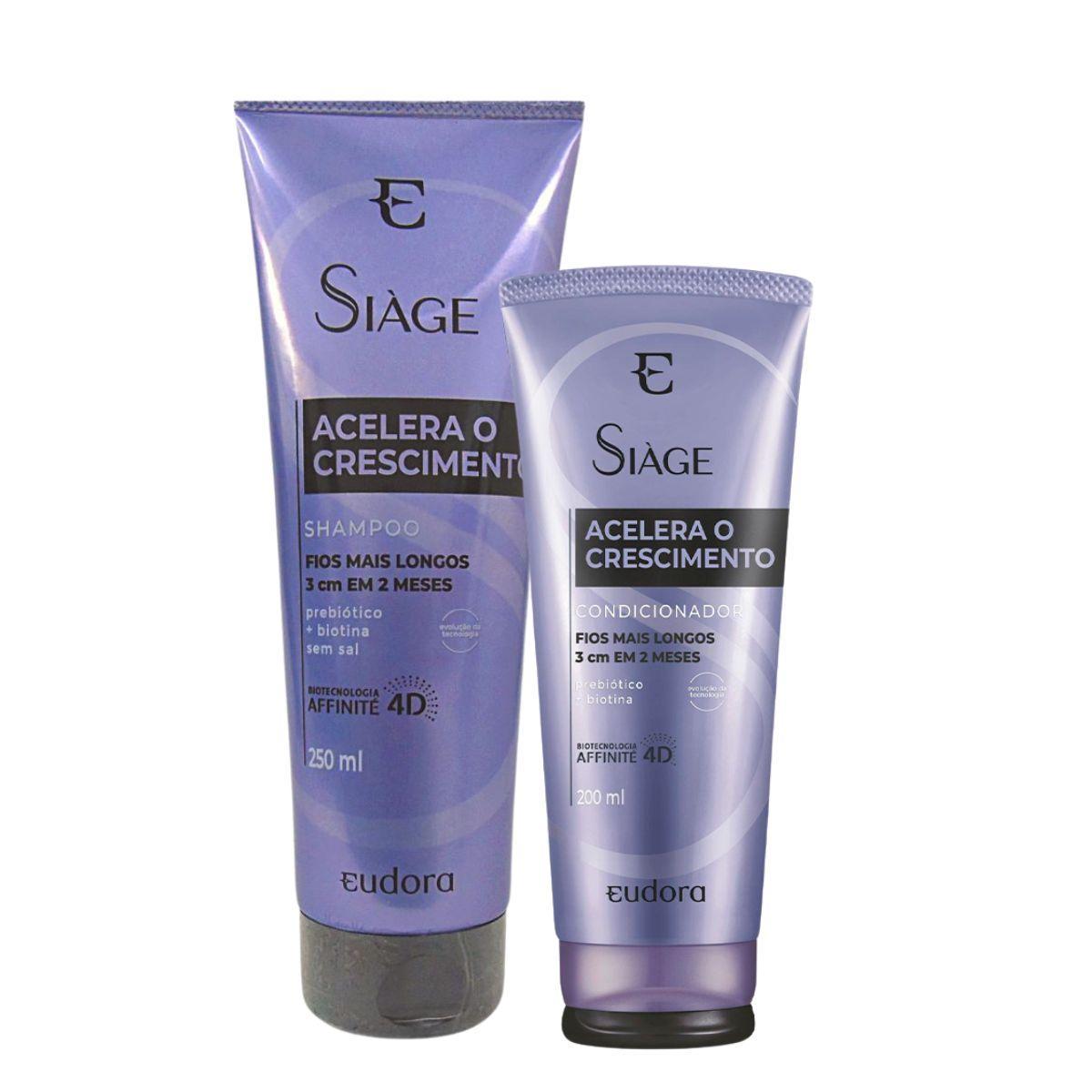 Shampoo Siage Eudora Acelera O Crescimento : Foi Feito Para Cabelos Com Dificuldade De Crescimento, Reduz E Previne A Queda Natural. Limpa Sem Ressecar, Possui Espuma Cremosa E Favorece O Crescimento A Partir De 12 Lavagens. São 3 Centímetros De Comprimento Dos Fios Em 2 Meses E 1.500 Fios Em 1 Mês.